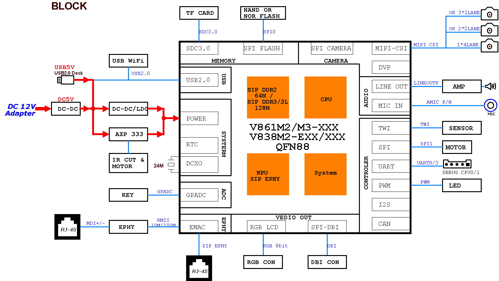 V861/V838-PER1开发板是全志科技专门针对V861/V838系列媒体处理芯片开发的演示板,用于给客户展示V861/V838强大的多媒体功能和智能视频处理能力,V861/V838-PER1开发板提供了丰富的接口,客户前期亦可以在V861/V838-PER1开发板上做前期软件开发工作。V861/V838-PER1开发板同时为客户硬件设计提供参考,客户只需要对V861/V838-PER1开发板电路进行增减即可完成硬件设计。