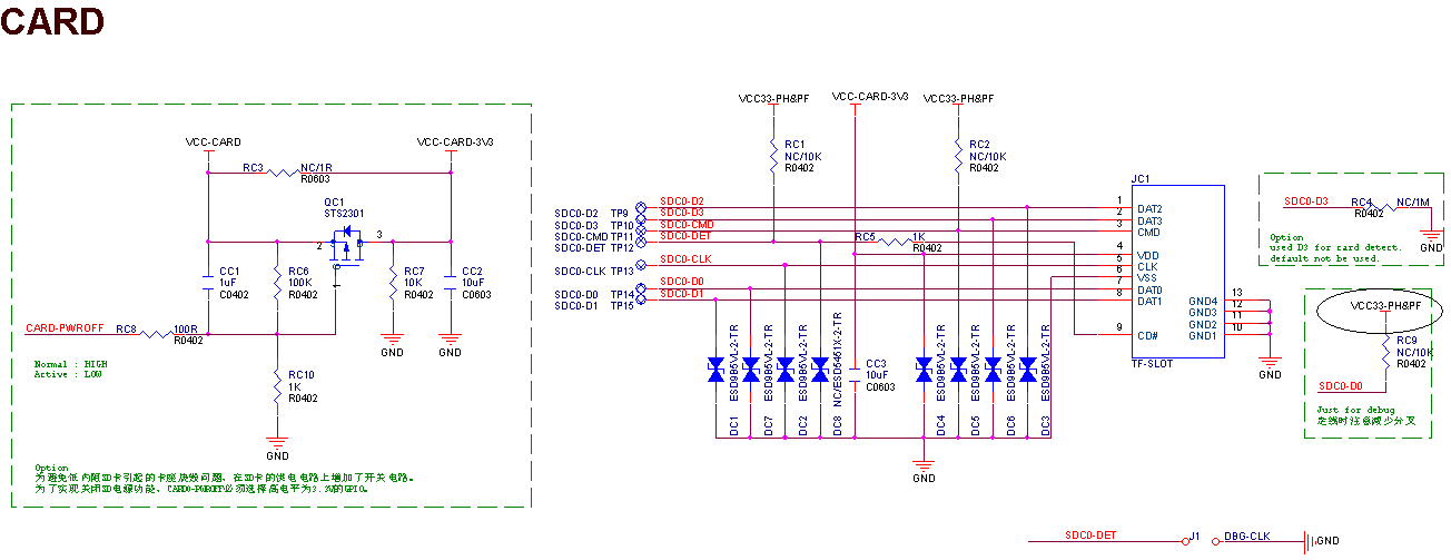 PC口为TF卡接口,支持SDIO 3.0模式,GPIO分配如图表所示::