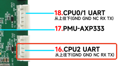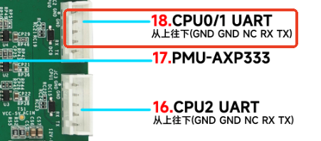 | 18 | 大核CPU0/1(双C907)串口打印 线序从上到下为 TX RX NC GND GND |