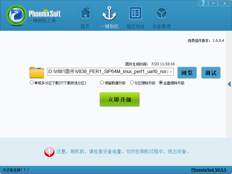 USB烧录采用全志发布的PhoenixSuit工具作为USB烧写工具,如图所示: