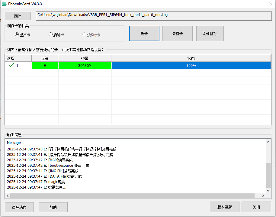 卡烧录需要使用全志发布的卡量产工具PhoneixCard,如图所示