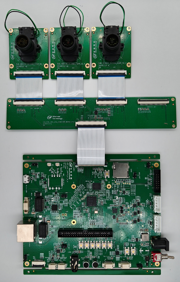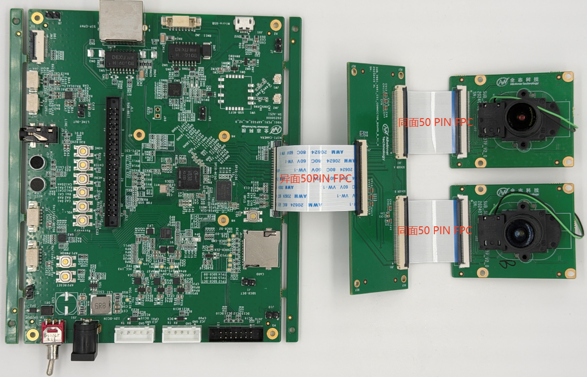 请注意:连接单个摄像头子板时候,只需要直接连接同面排线,如需多目场景则需要使用转接板,另外需注意。除了主板连接转接板的FPC排线是异面的排线,其它摄像头连接方式均用同面排线连接,切记不可接反,会导致短路。