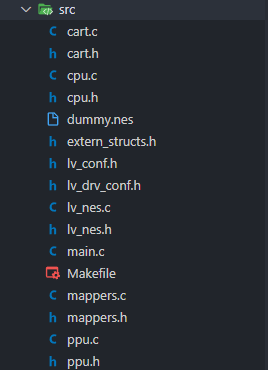 其中最重要的是 ppu.c ,它实现了 NES 输出图像回调 lvgl 并显示的功能。